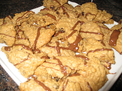 - Once cookies are cooled and cut, drizzle the melted chocolate on them