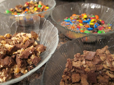 • Put each type of crushed up candy into its own bowl.