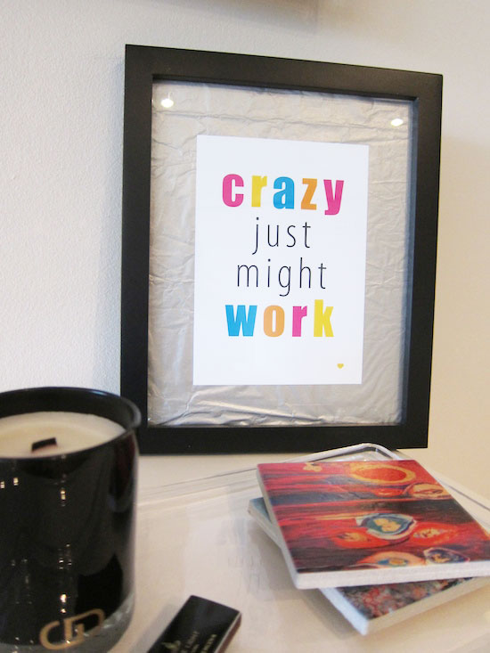 Now that Thanksgiving has come and gone (sad!! now I have to wait another year for my favorite day!), the holiday season is in FULL swing. With that, comes gifts. Lots and lots of gifts. It can be hard to shop for the loved ones in your life, we all know that. So you can imagine my excitement when the lovely ladies behind Ruthie & Rose told me about their online store, The Shoppe, officially launching TODAY filled with fabulous prints for all personalities and styles. Laurie and Jess were so sweet and gifted me a print of my choice, and now I get to show all of you how I’m styling it. I chose the ‘Crazy’ print I like to call it because, come on, we all have a little ‘crazy’ in each and every one of us. Without it, we’d be kinda boring, don’t ya think? I haven’t fully decided on the home for my new print, but here is what I’m playing around with. All I did was stick it on metallic tissue paper and put it in a frame I had. Easy peasy! If you’d like, let me know in the comments below your favorite spot for it?! And don’t forget to head over to The Shoppe and start stocking up on gifts for all.